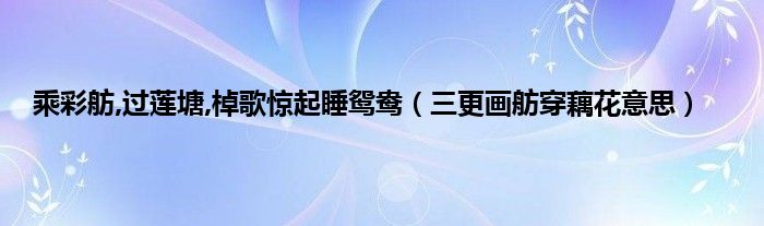 大家好,乘彩舫,过莲塘,棹歌惊起睡鸳鸯,三更画舫穿藕花意思很多人还不知道,现在让我们一起来看看吧!