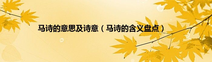 大家好,马诗的意思及诗意,马诗的含义盘点很多人还不知道,现在让我们一起来看看吧!
