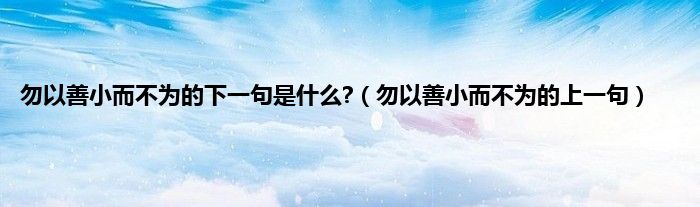 大家好,勿以善小而不为的下一句是什么?,勿以善小而不为的上一句很多人还不知道,现在让我们一起来看看吧!
