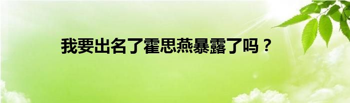 以上就是【我要出名了霍思燕暴露了吗?】相关内容。