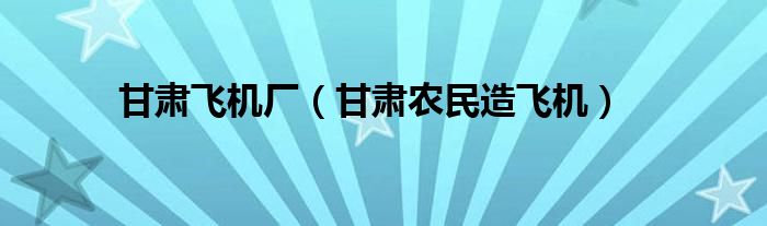 本文,甘肃飞机厂,甘肃农民造飞机到此就分享完毕,希望对大家有所帮助。