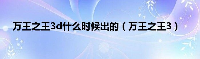 大家好,小问来为大家解答以上问题。万王之王3d什么时候出的,万王之王3这个很多人还不知道,现在让我们一起来看看吧!