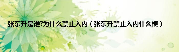 本文,张东升是谁?为什么禁止入内,张东升禁止入内什么梗到此就分享完毕,希望对大家有所帮助。