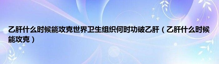 以上就是【乙肝什么时候能攻克世界卫生组织何时功破乙肝,乙肝什么时候能攻克】相关内容。