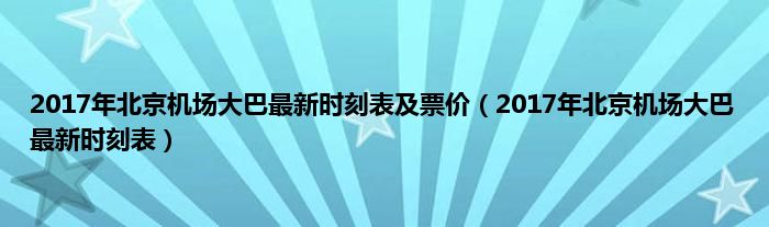 本文,2017年北京机场大巴最新时刻表及票价,2017年北京机场大巴最新时刻表到此就分享完毕,希望对大家有所帮助。