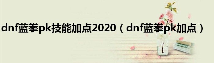 dnf蓝拳pk技能加点2020(dnf蓝拳pk加点)