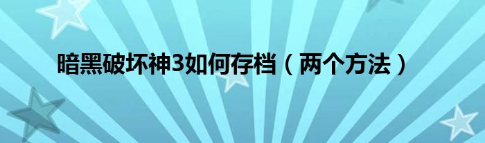 本文,暗黑破坏神3如何存档,两个方法到此就分享完毕,希望对大家有所帮助。