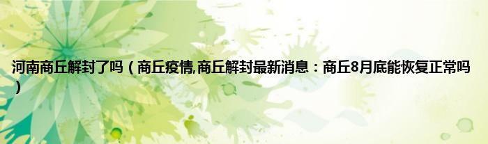 本文,河南商丘解封了吗,商丘疫情,商丘解封最新消息:商丘8月底能恢复正常吗到此就分享完毕,希望对大家有所帮助。