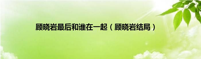 大家好,顾晓岩最后和谁在一起,顾晓岩结局很多人还不知道,现在让我们一起来看看吧!