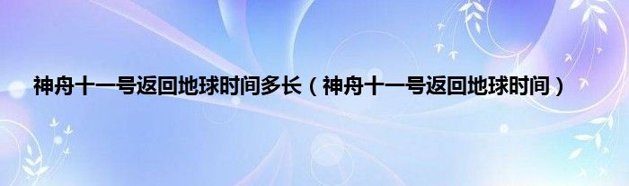 大家好,神舟十一号返回地球时间多长,神舟十一号返回地球时间很多人还不知道,现在让我们一起来看看吧!