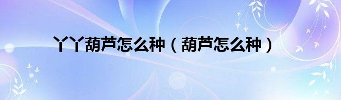 大家好,小问来为大家解答以上问题。丫丫葫芦怎么种,葫芦怎么种这个很多人还不知道,现在让我们一起来看看吧!