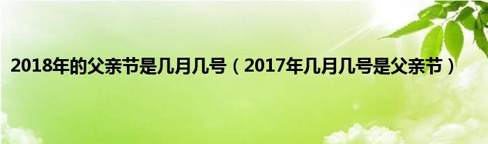 本文,2018年的父亲节是几月几号,2017年几月几号是父亲节到此就分享完毕,希望对大家有所帮助。