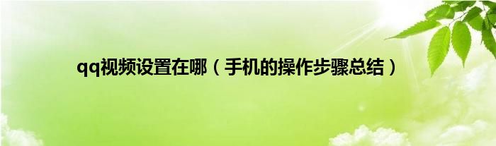 本文,qq视频设置在哪,手机的操作步骤总结到此就分享完毕,希望对大家有所帮助。