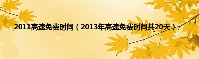 本文,2011高速免费时间,2013年高速免费时间共20天到此就分享完毕,希望对大家有所帮助。