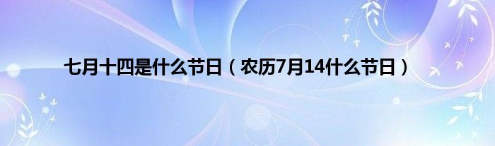 本文,七月十四是什么节日,农历7月14什么节日到此就分享完毕,希望对大家有所帮助。