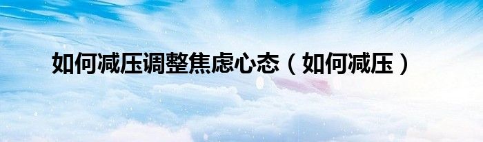 大家好,小问来为大家解答以上问题。如何减压调整焦虑心态,如何减压这个很多人还不知道,现在让我们一起来看看吧!