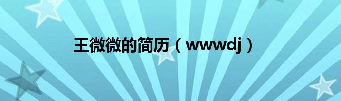 大家好,小问来为大家解答以上问题。王微微的简历,wwwdj这个很多人还不知道,现在让我们一起来看看吧!