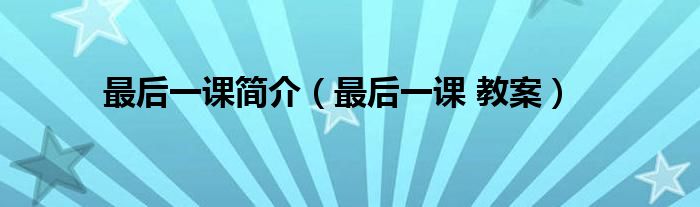 大家好,小问来为大家解答以上问题。最后一课简介,最后一课 教案这个很多人还不知道,现在让我们一起来看看吧!
