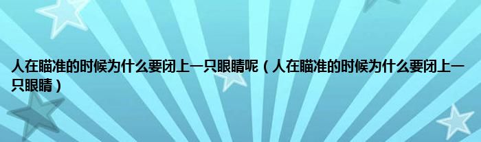 大家好,小问来为大家解答以上问题。人在瞄准的时候为什么要闭上一只眼睛呢,人在瞄准的时候为什么要闭上一只眼睛这个很多人还不知道,现在让我们一起来看看吧!