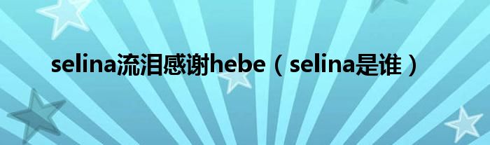 大家好,小问来为大家解答以上问题。selina流泪感谢hebe,selina是谁这个很多人还不知道,现在让我们一起来看看吧!