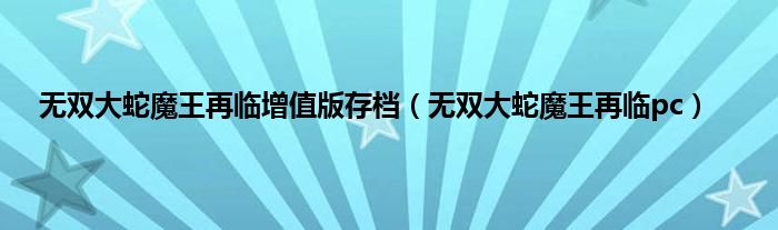 大家好,小问来为大家解答以上问题。无双大蛇魔王再临增值版存档,无双大蛇魔王再临pc这个很多人还不知道,现在让我们一起来看看吧!