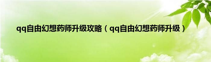 以上就是【qq自由幻想药师升级攻略,qq自由幻想药师升级】相关内容。