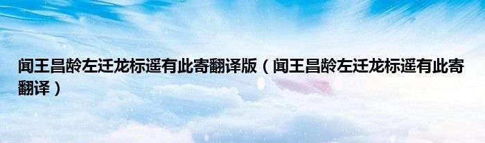 大家好,小问来为大家解答以上问题。闻王昌龄左迁龙标遥有此寄翻译版,闻王昌龄左迁龙标遥有此寄翻译这个很多人还不知道,现在让我们一起来看看吧!