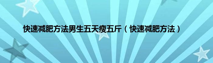 大家好,小问来为大家解答以上问题。快速减肥方法男生五天瘦五斤,快速减肥方法这个很多人还不知道,现在让我们一起来看看吧!