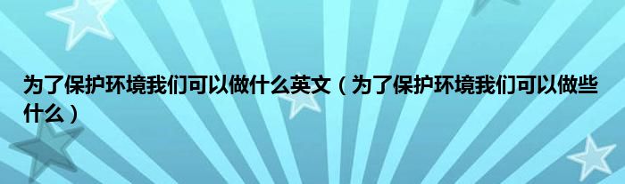 以上就是【为了保护环境我们可以做什么英文,为了保护环境我们可以做些什么】相关内容。