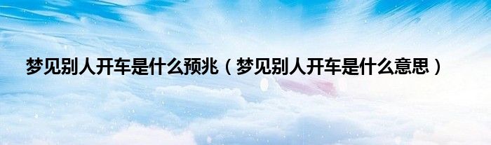 大家好,综合小编来为大家讲解下。梦见别人开车是什么预兆,梦见别人开车是什么意思这个很多人还不知道,现在让我们一起来看看吧!