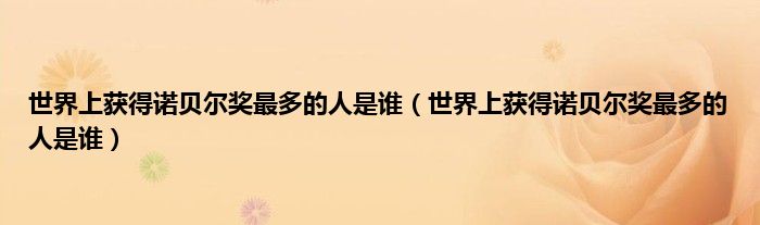 大家好,综合小编来为大家讲解下。世界上获得诺贝尔奖最多的人是谁,世界上获得诺贝尔奖最多的人是谁这个很多人还不知道,现在让我们一起来看看吧!