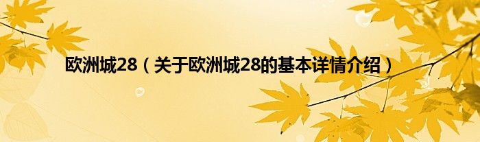 欧洲城28(关于欧洲城28的基本详情介绍)