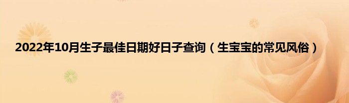 大家好,综合小编来为大家讲解下。2022年10月生子最佳日期好日子查询,生宝宝的常见风俗这个很多人还不知道,现在让我们一起来看看吧!