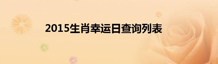 大家好,综合小编来为大家讲解下。2015生肖幸运日查询列表这个很多人还不知道,现在让我们一起来看看吧!
