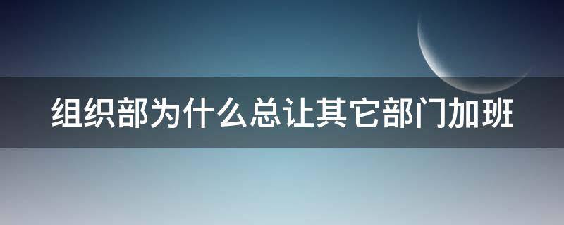 组织部总让其它部门加班是因为权力大。组织部的工作性质和其他部门不同,组织部负责组织建设、干部工作、人才工作、干部教育培训、干部监督、公务员管理、老干部等工作,事情很多、很杂,所以组织部加班也比较频繁。组织部需要时常和其他部门进行联系,因此涉及到的其他部门也需要加班。虽然组织部的工作较为繁重,尤其是在重大党建节点,会经常性的加班。但是付出与收获成正比,在组织部能够工作五年以上,便能够被提拔成为部门领导。
