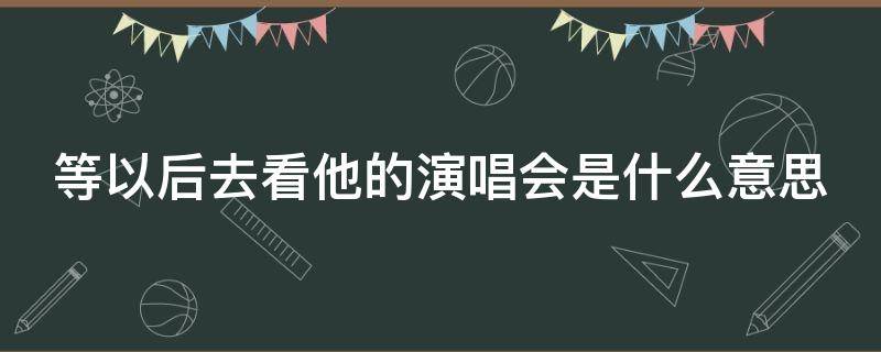 等以后去看他的演唱会意思是等以后去看他在观众前的现场表演,通常是指音乐的表演。以后像无限期的确定,数天、数月或数年才去。音乐可以是由单独的音乐人所表演或是音乐的集体演出,歌手通常是在舞台上表演。还有非常可观的门票收入,也有不少大型演出是免费入场的。演唱会对于歌迷来说则是一个狂欢的节日。一般时长在两个小时及以上。演唱会团队选择必须具备策划能力、执行能力、专业技能、台前幕后的团队,各类活动都可以进行一手包办的团队。
