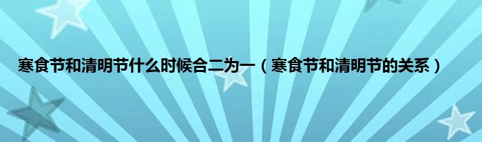 本文寒食节和清明节什么时候合二为一,寒食节和清明节的关系到此分享完毕,希望对大家有所帮助。