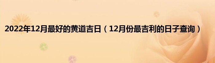 本文2022年12月最好的黄道吉日,12月份最吉利的日子查询到此分享完毕,希望对大家有所帮助。