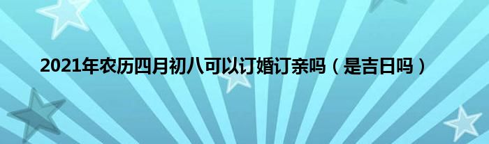 大家好,综合小编来为大家讲解下。2021年农历四月初八可以订婚订亲吗,是吉日吗这个很多人还不知道,现在让我们一起来看看吧!