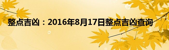 大家好,综合小编来为大家讲解下。整点吉凶:2016年8月17日整点吉凶查询这个很多人还不知道,现在让我们一起来看看吧!