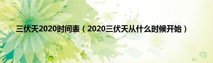 大家好,综合小编来为大家讲解下。三伏天2020时间表,2020三伏天从什么时候开始这个很多人还不知道,现在让我们一起来看看吧!
