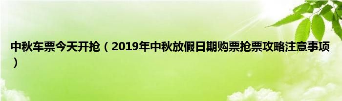 大家好,综合小编来为大家讲解下。中秋车票今天开抢,2019年中秋放假日期购票抢票攻略注意事项这个很多人还不知道,现在让我们一起来看看吧!