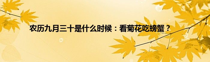 大家好,综合小编来为大家讲解下。农历九月三十是什么时候:看菊花吃螃蟹?这个很多人还不知道,现在让我们一起来看看吧!