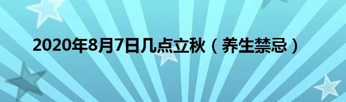 本文2020年8月7日几点立秋,养生禁忌到此分享完毕,希望对大家有所帮助。