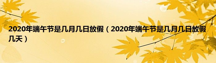 大家好,综合小编来为大家讲解下。2020年端午节是几月几日放假,2020年端午节是几月几日放假几天这个很多人还不知道,现在让我们一起来看看吧!