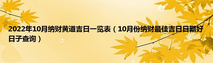本文2022年10月纳财黄道吉日一览表,10月份纳财最佳吉日日期好日子查询到此分享完毕,希望对大家有所帮助。