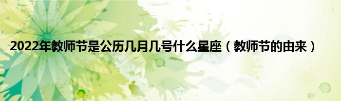 本文2022年教师节是公历几月几号什么星座,教师节的由来到此分享完毕,希望对大家有所帮助。