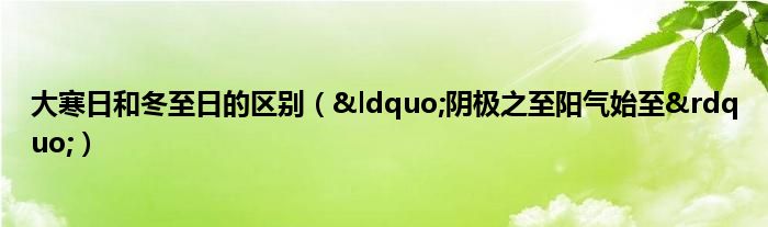 大家好,综合小编来为大家讲解下。大寒日和冬至日的区别,“阴极之至阳气始至”这个很多人还不知道,现在让我们一起来看看吧!