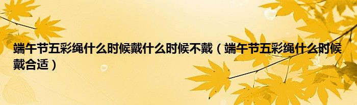 大家好,综合小编来为大家讲解下。端午节五彩绳什么时候戴什么时候不戴,端午节五彩绳什么时候戴合适这个很多人还不知道,现在让我们一起来看看吧!
