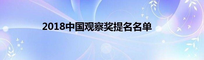 大家好,综合小编来为大家讲解下。2018中国观察奖提名名单这个很多人还不知道,现在让我们一起来看看吧!